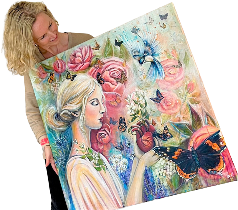 In meinen Seelenbildern lasse ich meine innere Welt nach aussen fließen und halte dabei kleine Herzensbotschaften fest. Sie erzählen von Heilung, von Vertrauen, vom Loslassen und von der Kraft, die in jedem von uns wohnt. Beim Betrachten meiner Werke darfst du diese Stärke spüren – vielleicht ein kleines Aufatmen, ein Moment von Ruhe oder ein leises Erkennen in dir selbst.